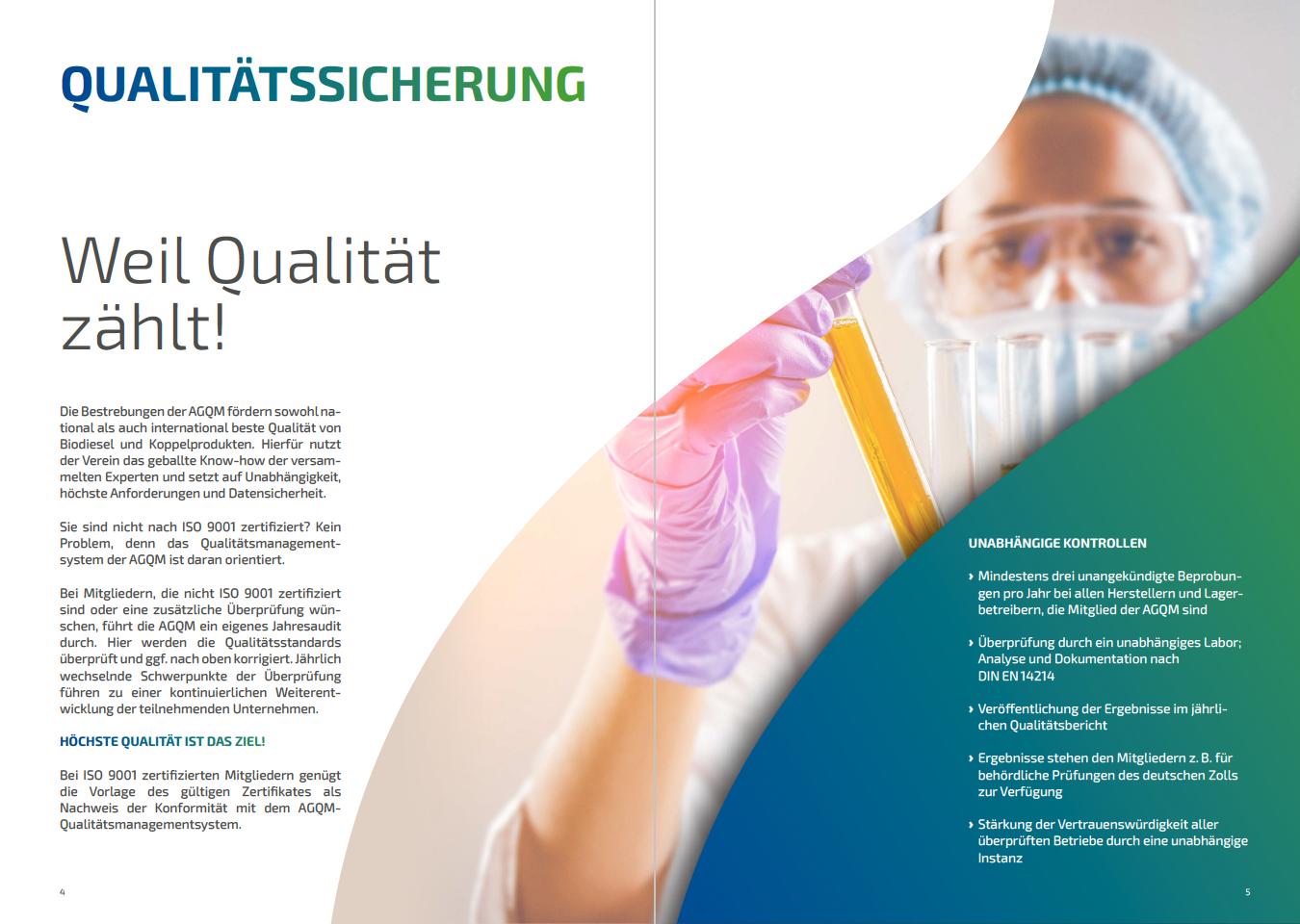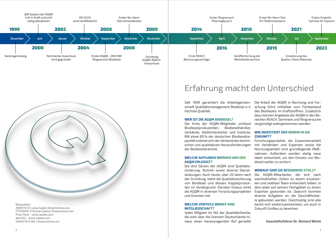 WPRC berät die Arbeitsgemeinschaft Qualitätsmanagement Biodiesel e.V. (AGQM ) regelmäßig bei neuen Veröffentlichungen und Publikationen. Die Selbstdarstellungsbroschüre wurde ebenso wie das Merkblatt zur Grünen Woche 2023 in Deutsch und Englisch neu aufgelegt.
