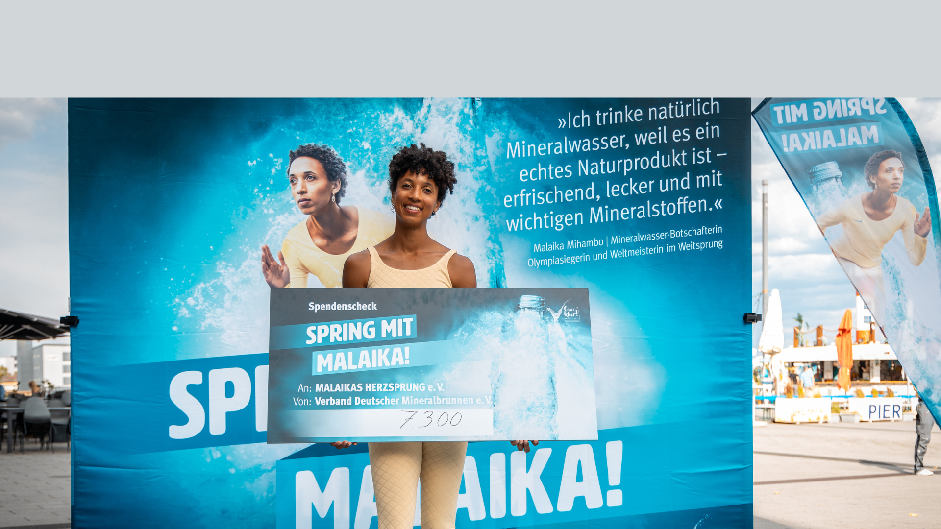 Unter dem Motto SPRING MIT MALAIKA! haben wir für den Verband Deutscher Mineralbrunnen e. V. (VDM) ein Benefiz-Event mit der Olympiasiegerin und zweifachen Weltmeisterin Malaika Mihambo in Ludwigshafen realisiert. Als „Mineralwasser-Botschafterin” kooperiert die Ausnahmeathletin bereits seit längerem mit dem VDM, für den wir das Veranstaltungskonzept entwickelt und umgesetzt haben. Das zentrale Element des Events: Besucherinnen und Besucher konnten für einen guten Zweck weitspringen. Jeder Zentimeter brachte dabei Geld für die Stiftung „Malaikas Herzsprung e. V.“. Außerdem durften kleine Nachwuchsathletinnen und -athleten aus regionalen Sportvereinen mit dem Leichtathletik-Star eine Trainingseinheit absolvieren. Die Bilanz: 1 Weltmeisterin, 100 glückliche Kinder, 1.000 Sprünge sowie 7.300 EUR für Malaikas Stiftung. Und dazu auch noch eine großartige Presseresonanz in TV, Radio sowie Print- und Onlinemedien.